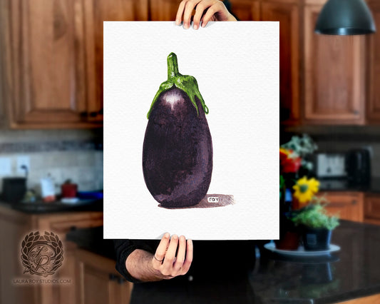 Baby Eggplant Watercolor Art Print – Mini Purple Vegetable Kitchen Decor, Botanical Produce Illustration
