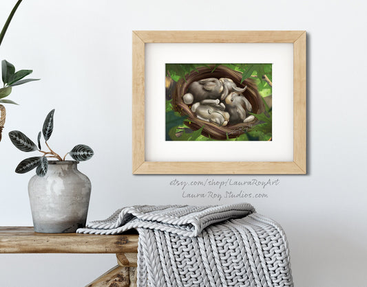 Hand-Drawn Woodland Chickadee Leopards Whimsical Pen + Ink Giclée Print