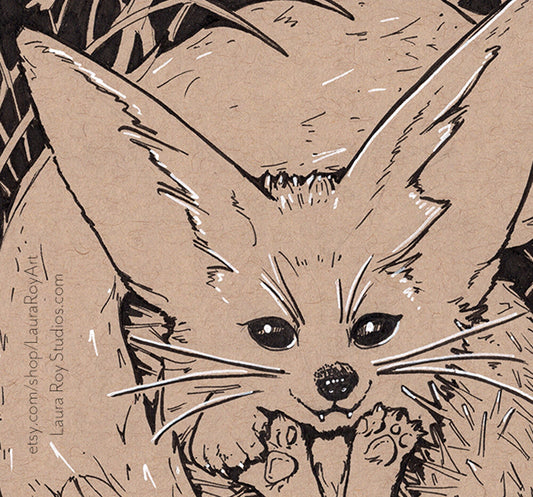 Hedgehog Fox Whimsical Pen + Ink | Giclée Print
