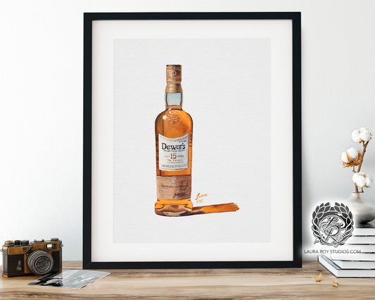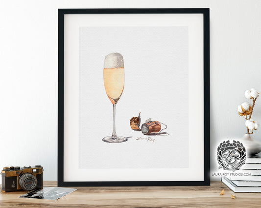 Champagne Watercolor Art Print – Glass of Bubbly with Cork and Foil, Celebration Wall Decor