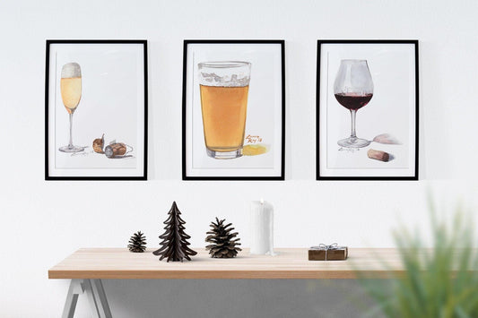 Beer, Wine, and Champagne (Set of 3) Watercolors | Giclée Prints