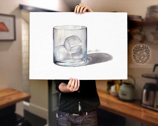 Rocks Glass Watercolor Art Print – Classic Cocktail Glass Illustration, Sophisticated Bar Decor