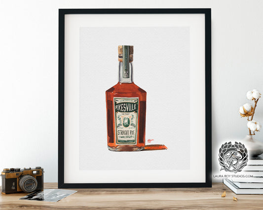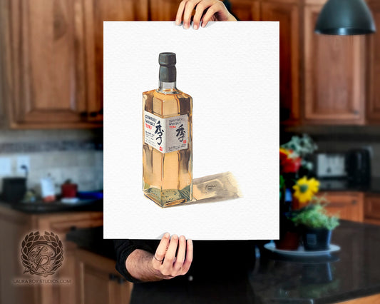 Personalized Whiskey Snowflake Card - Watercolor Whiskey Bottles Snowflake Pattern, Customizable Christmas Holiday Greeting (Single or Set)