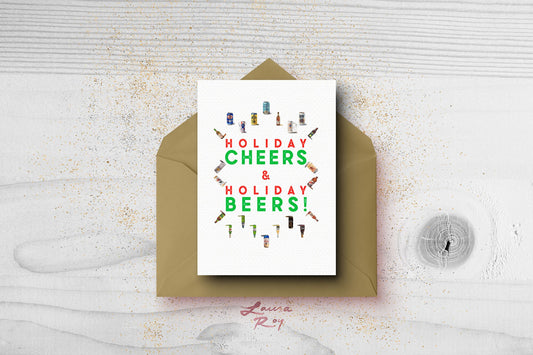 Personalized Beer Tree Christmas Card - Watercolor Beer Bottles and Cans Forming a Tree, Customizable Holiday Greeting (Single or Set)