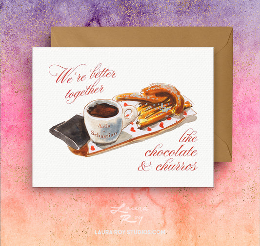 Churros Watercolor Valentine with Hot Chocolate - Better Together Card, Sweetheart Gift for Her or for Him (Single or Set)