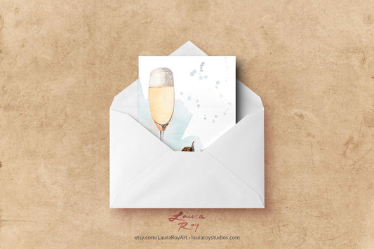 Personalized Champagne Toast Congratulations Card - Watercolor Cheers for Wedding, Promotion, Engagement, or Anniversary (Single or Set)