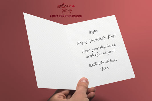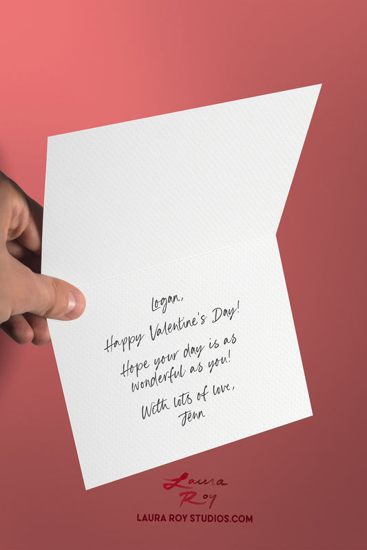 Personalized Heart Tree Trunk Card - Watercolor Artwork with Pink Hearts for Valentine's Day, Weddings, or Anniversaries (Single or Set)