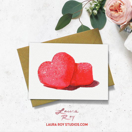 Personalized Sparkly Pink Gummy Heart Candies - Watercolor Valentine's Day Card, Sweetheart Gift for Her or for Him (Single or Set)