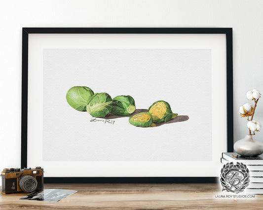 • Brussels Sprouts Watercolor Art Print – Contemporary Vegetable Still Life, Gourmet Kitchen Decor