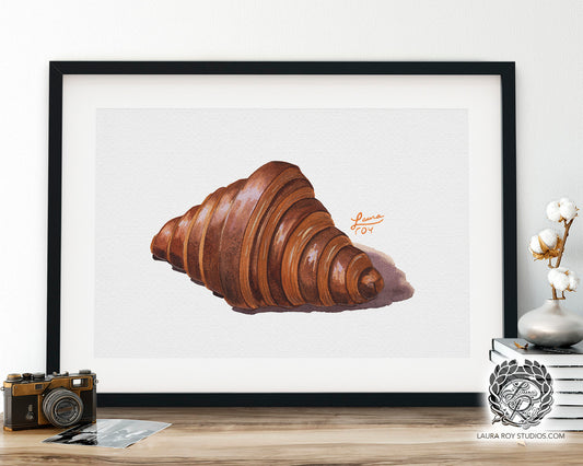 • Chocolate Croissant Watercolor Art Print – Decadent Pastry Illustration, French Bakery Kitchen Decor