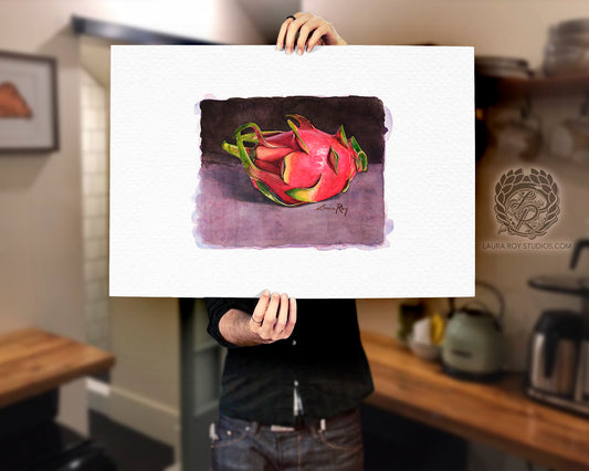 Dragon Fruit Watercolor Art Print – Vibrant Tropical Fruit Illustration, Exotic Kitchen Wall Decor