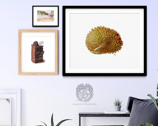 Durian Watercolor Art Print Intricate Tropical Fruit Illustration, Unique Kitchen Wall Decor