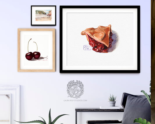 Watercolor Cherry Pie Slice Art Print – Sweet Dessert Wall Decor, Food Illustration, Cottage Kitchen Art Gift