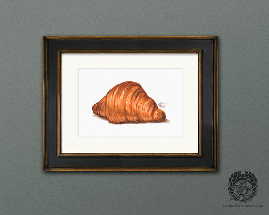 Watercolor Croissant Art Print – French Pastry Kitchen Decor, Elegant Food Illustration, Fine Art Bakery Wall Art, Giclée Print