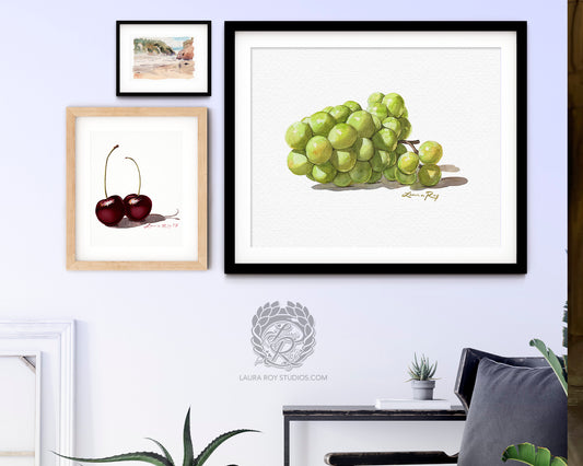 Watercolor Sauvignon Blanc Grape Art Print – Bright White Wine Grapes Wall Decor, Vineyard Kitchen Art