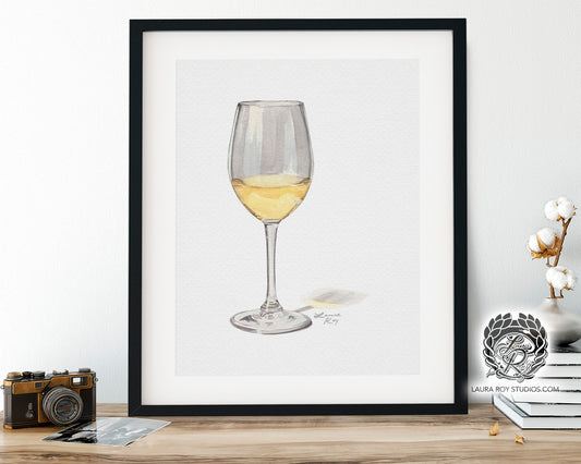 White Wine Watercolor Art Print – Glass of Chardonnay Kitchen Decor, Elegant Wine Art