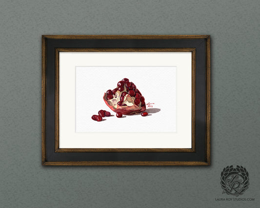 Watercolor Pomegranate Art Print – Fine Art Kitchen Decor, Foodie Gift, Giclée Still Life Fruit Painting