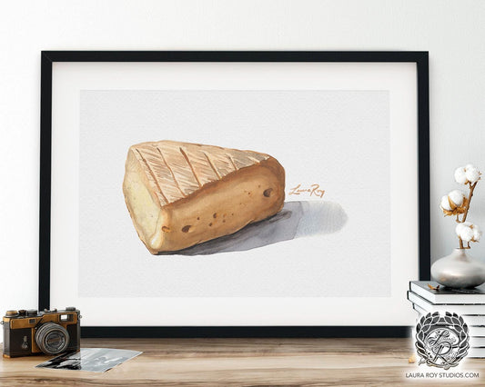 Watercolor Soft-Ripened Cheese Wedge Art Print Creamy Gourmet Cheese Wall Decor, Food Illustration Print