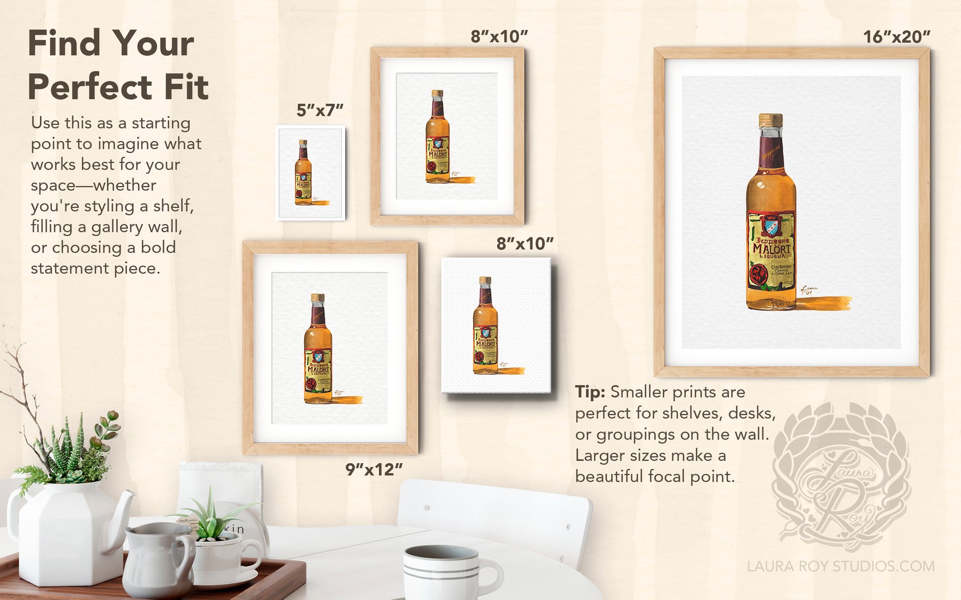 Glass, light, and spirit. This series began with whiskey bottles--painted one by one, always from life. Over time, it grew into a quiet celebration of all kinds of bottles: aged and amber, herbaceous and jewel-toned, sharp-shouldered or round with soft curves. Each one is a small design marvel, catching and bending light in its own way. I use watercolor to explore these forms: how glass refracts and distorts, how a label peels or shines, how color glows from within. These are portraits of favorite bottles, but more than that--they're studies in shape, memory, and the small joys we pour and share.