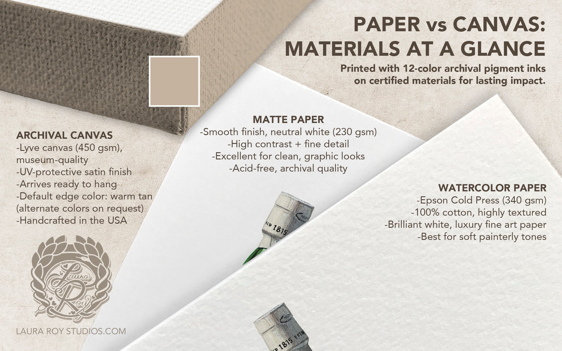 Sizes reflect paper or canvas dimensions; borders may vary slightly. Want a custom canvas edge color? Leave a note at checkout. See listing photos for more information on material options.