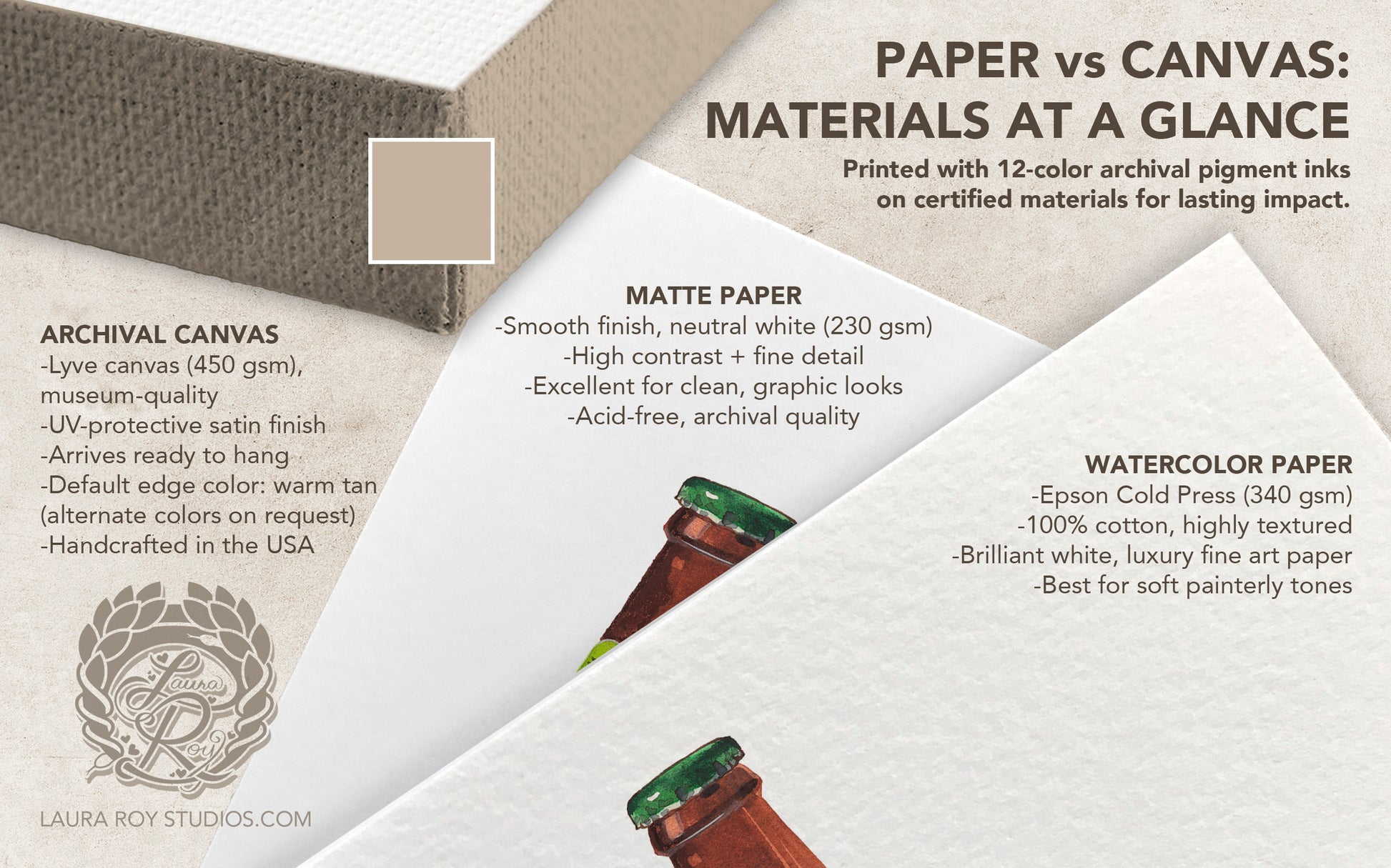 - Textured watercolor paper (unframed), with a painterly texture for rich depth